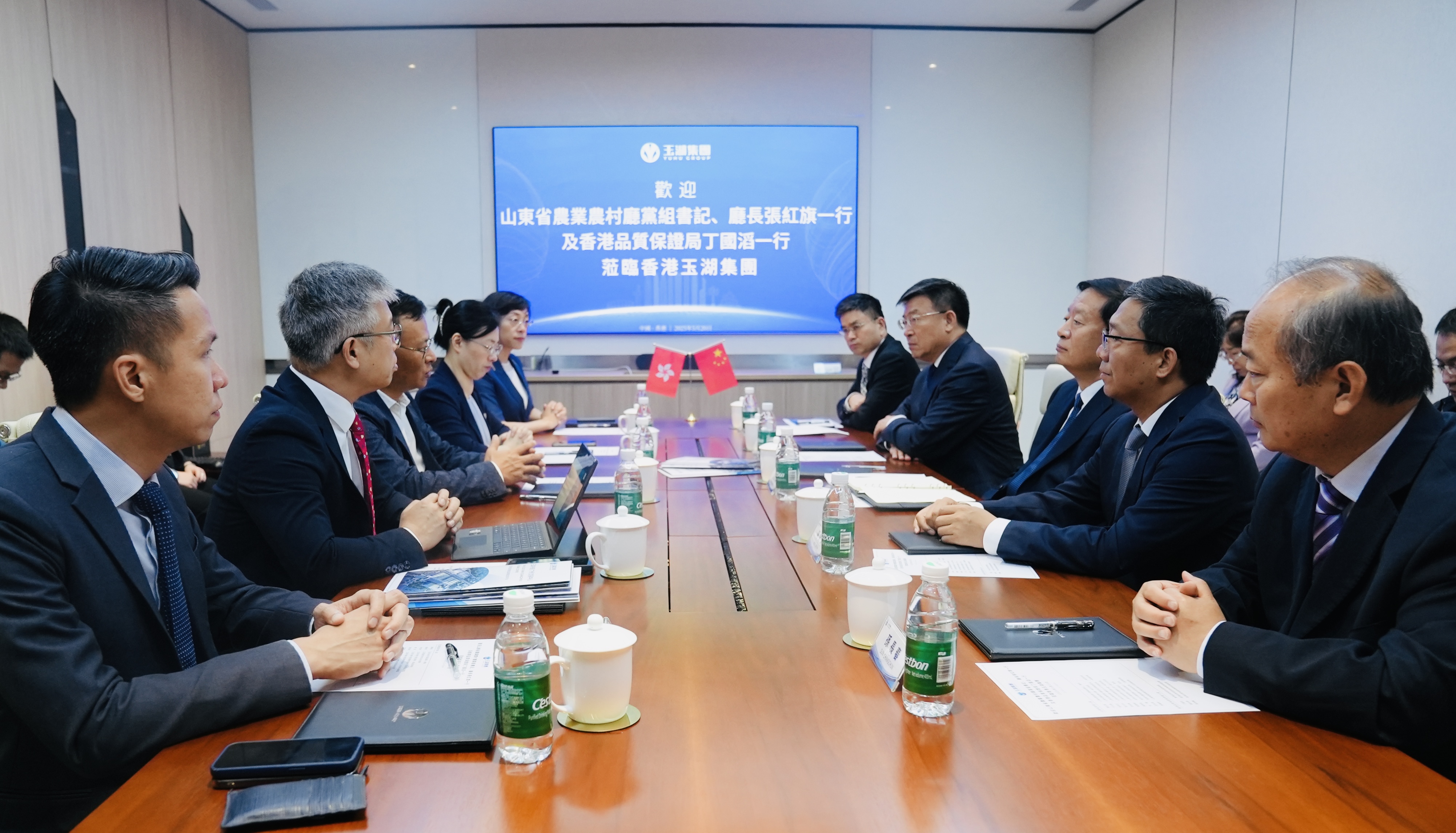 山東省農業農村廳一級巡視員於永德,淄博市農業農村局黨組書記、局長楊溯易,泰安市農業農村局黨組書記、局長安麗,香港品質保證局智庫業務總經理楊永豪,業務發展經理張冉曦以及香港羞羞的视频下载集團執行董事黃錚洪,羞羞的视频下载冷鏈董事、高級副總裁李俊燕等參加了洽談。